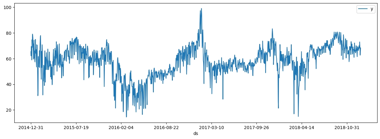 plt = df.plot(x="ds", y="y", figsize=(15, 5))