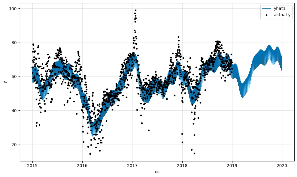 # Создание нового DataFrame, прогнозирующего 365 дней в будущем, с учетом исторических данных