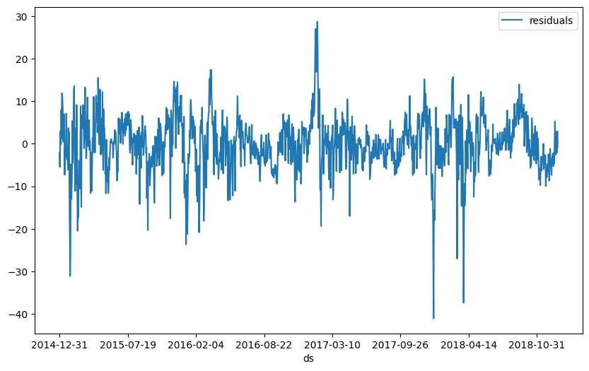 fig = df_residuals.plot(x="ds", y="residuals", figsize=(10, 6))