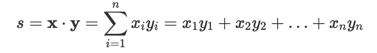 где: s - это скалярное произведение двух векторов, а x и y - два вектора.