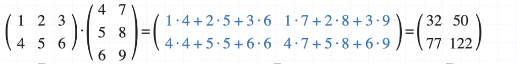 При вычислении скалярного произведения между двумя двумерными массивами возвращается двумерный массив. Это достигается за счет умножения матриц друг на друга.