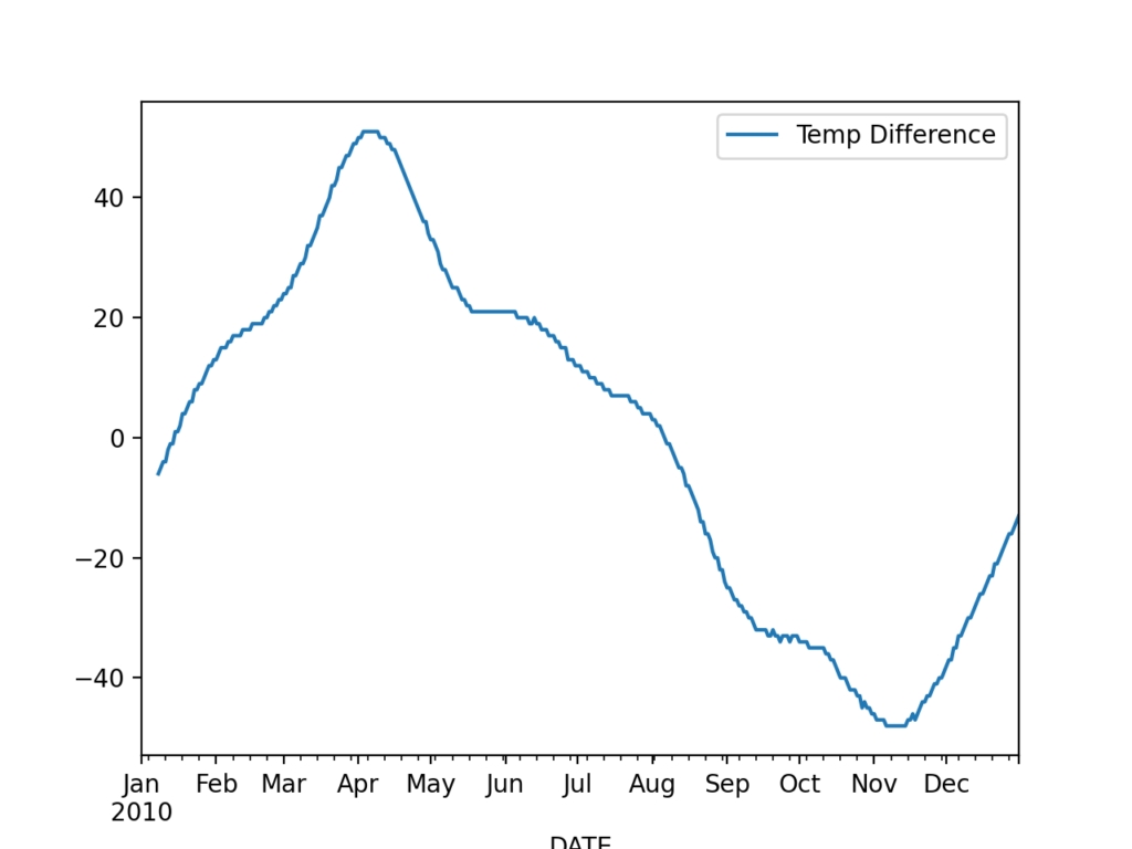 df['Temp Difference'] = df['DLY-TMAX-NORMAL'].diff(periods=7)
