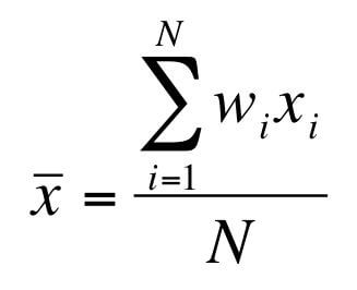 Эта формула представляет собой сумму каждого элемента, умноженного на его вес, делённую на количество элементов.